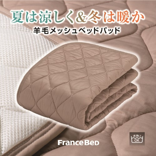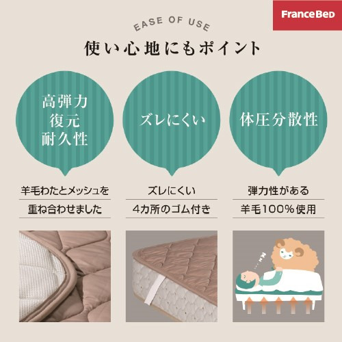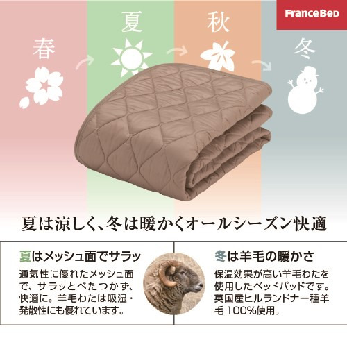 フランスベッド セレクト3点セット羊毛メッシュベッドパット1枚 マットレスカバーエッフェ 2枚 セミダブルロング キナリ
