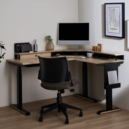 コイズミファニテック ジェントラー L型昇降デスク 3本脚 業界最速スピード昇降 ホワイトウォッシュ KWD-571WWBK