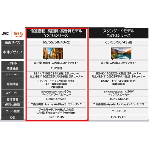 ●ヤマダオリジナル「JVC Fire TV搭載スマートテレビ YXシリーズ」倍速搭載 高画質・高音質モデル