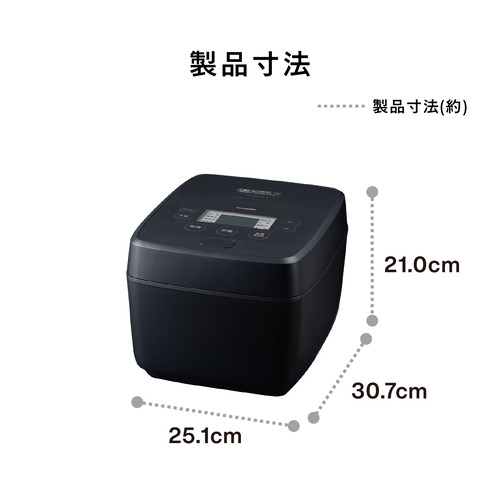 炊飯容量:白米・無洗米:1〜5.5合 玄米・雑穀米・炊込み・おこわ:1合〜3合 おかゆ:0.5合〜1.5合