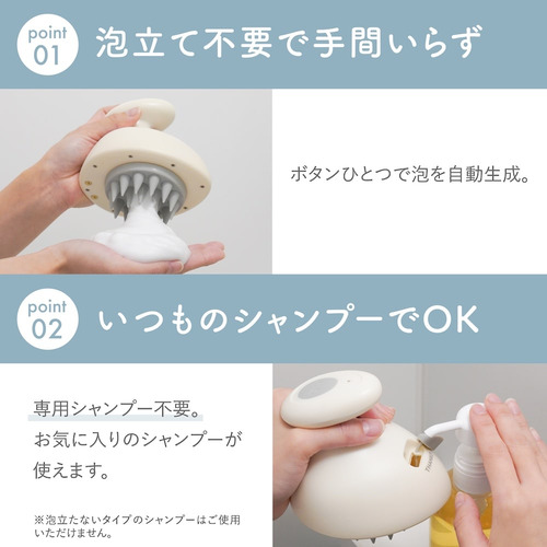 シャンプーの泡立てと頭皮ケアをこれ1台で。泡を出しながらしっかり洗えます。