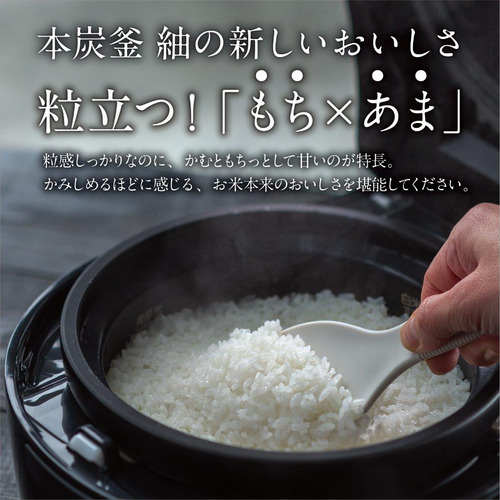 仕込みでしっかりお米に吸水させた後、本炭釜の特長を生かし沸騰するまでの温度の立ち上がりを素早くすることで、粒感がありみずみずしい仕上がりになります。