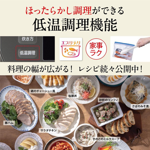 温度と時間を設定したら、あとはおまかせ!レシピの幅を広げられる低温調理機能を搭載。誰でも簡単に、多彩なメニューをお楽しみいただけます。