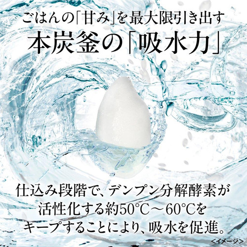 0.5〜2合の少量をじっくり吸水させながら沸騰させる為、甘みを熟成させながら、炊き上げます。0.5合単位に合わせた適切な炊き方で、少量をよりおいしく炊き上げます。