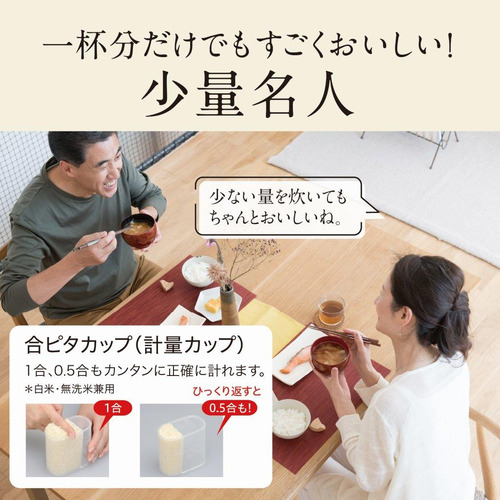 付属品:自立しゃもじ・合ピタカップ(計量カップ)・取扱説明書兼炊飯用メニュー集・おいしいご飯の炊き方シート