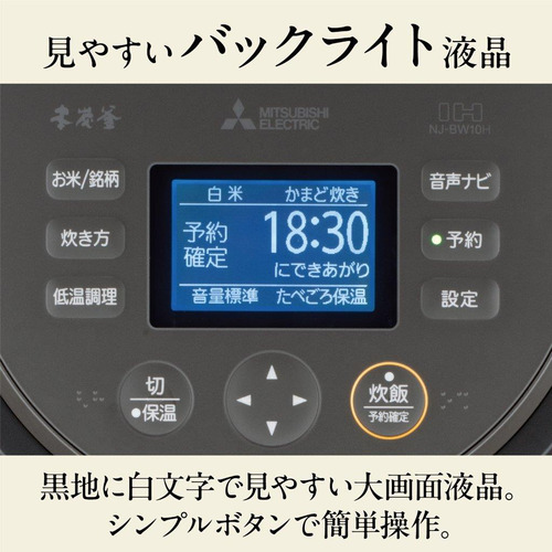 三菱電機 NJ-BW10H-W IHジャー炊飯器 本炭釜 5.5合 白真珠