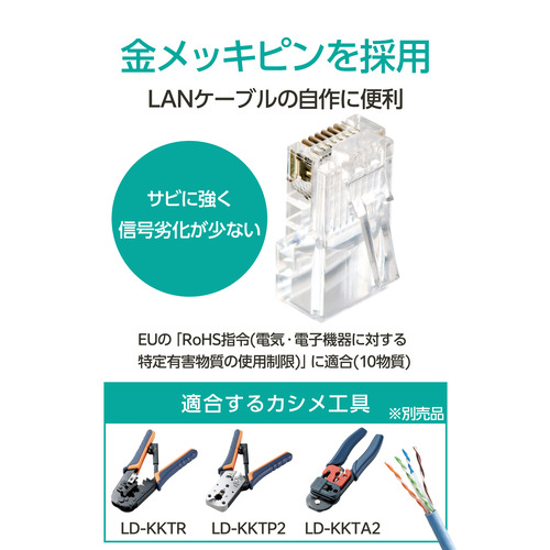 エレコム LD-RJ45T100V2 RJ45 LANコネクタ Cat5e 100個 業務用 単線・より線 両対応 金メッキ クリア
