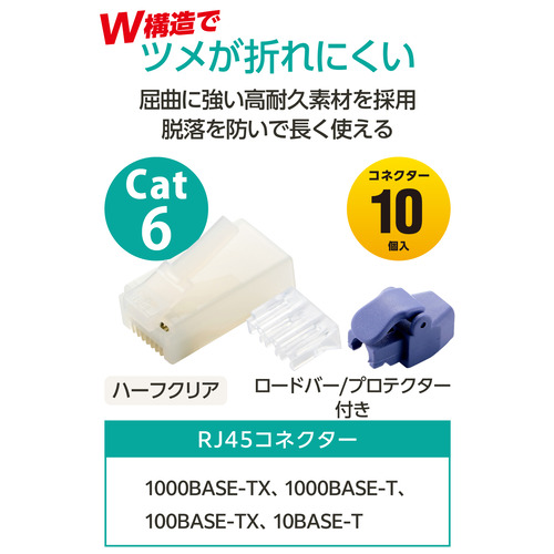 エレコム LD-6RJ45T10/TP2 RJ45 LANコネクタ Cat6 10個 ロードバー+プロテクター 単線・より線 両対応 ハーフクリア
