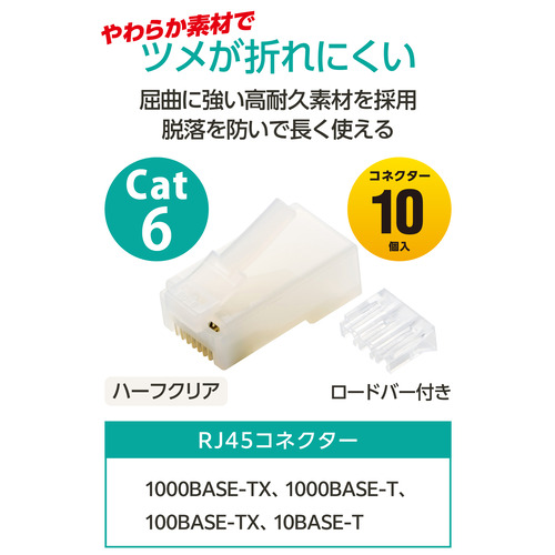 エレコム LD-6RJ45T10/T2 RJ45 LANコネクタ Cat6 10個 ロードバー 単線・より線 両対応 ハーフクリア