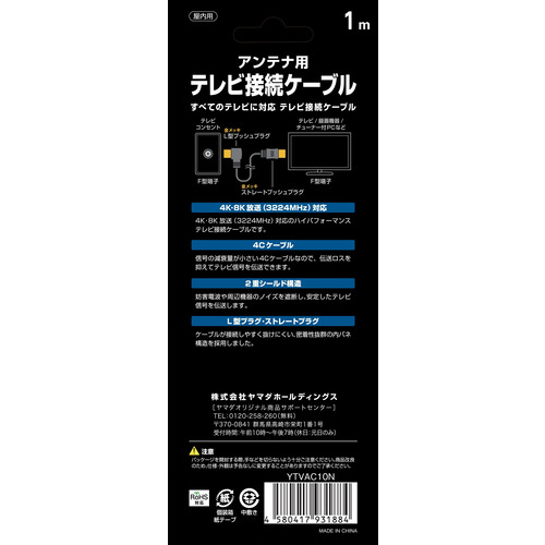 Yselect YTVAC10N 4K8K放送対応 テレビ接続ケーブル 1m ブラック