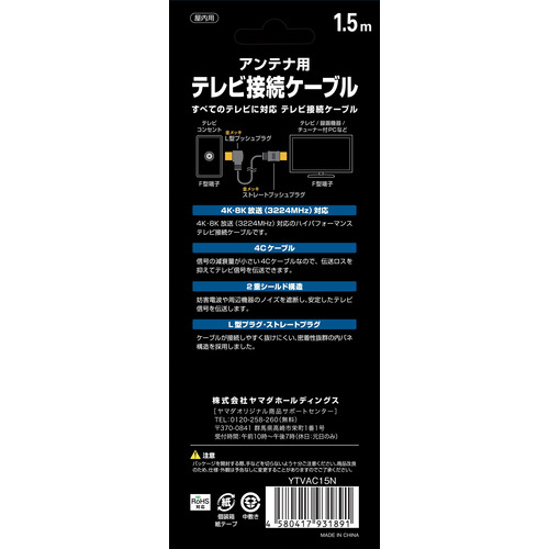 Yselect YTVAC15N 4K8K放送対応 テレビ接続ケーブル 1.5m ブラック