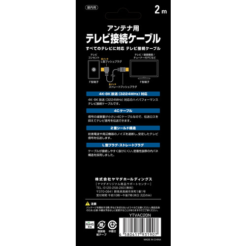 Yselect YTVAC20N 4K8K放送対応 テレビ接続ケーブル 2m ブラック