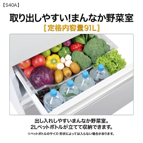 より広く受け入れられる2LPETが入る真ん中野菜室と冷凍庫のバランス型