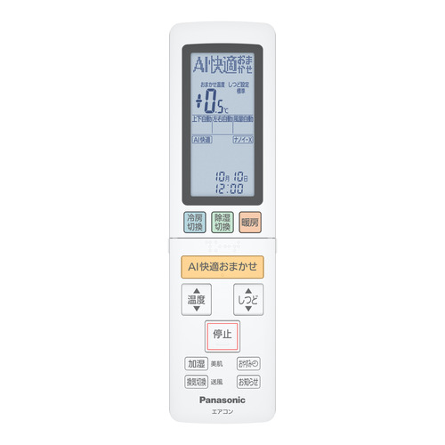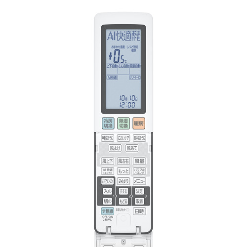 リモコン:AI快適おまかせ、お知らせ機能(電気代等)、バックライト液晶、0.5度刻み