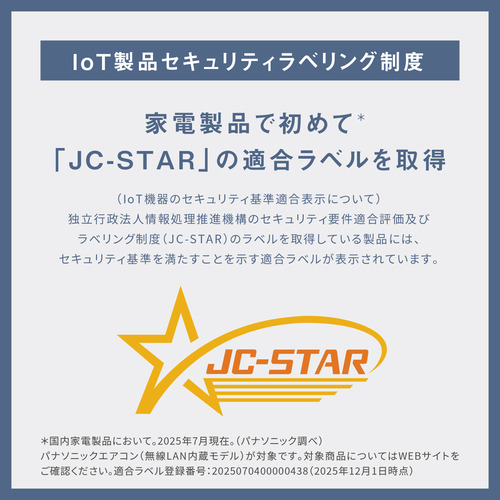 ・IoTセキュリティ制度 JC-STAR 適合ラベル★1 取得 ・便利な新機能がアプリでも使える ・継続的なアップデートで使うたびに便利に