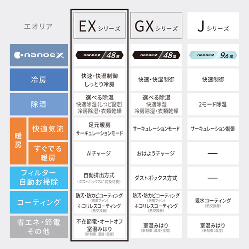 ●ナノイーX搭載、フィルターお掃除つき奥行きコンパクトモデル