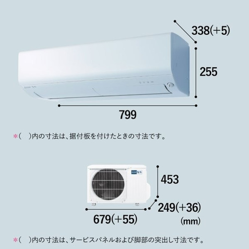 本体寸法:【室内機】たて338×よこ×799×高さ255mm【室外機】たて249×よこ×679×高さ453mm