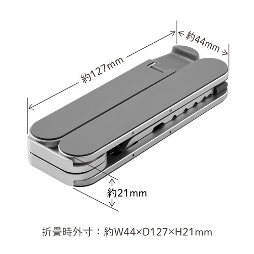 折りたたむと手のひらサイズでスマートフォンとほぼ同じサイズの超コンパクトなノートパソコンスタンドです。質量も約190gと軽量なので自宅からオフィスへの持ち運びや、外出先など場所を選ばずさまざまなシーンで活躍します。持ち運びに便利な専用の収納ポーチ付きで、パソコンケースやカバンへの収納にお使いいただけます。