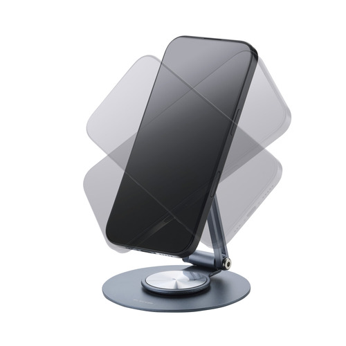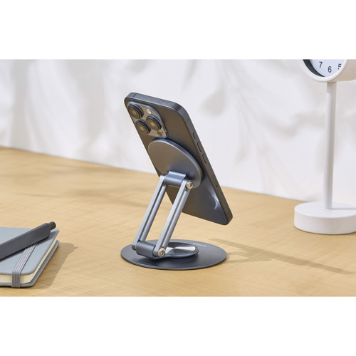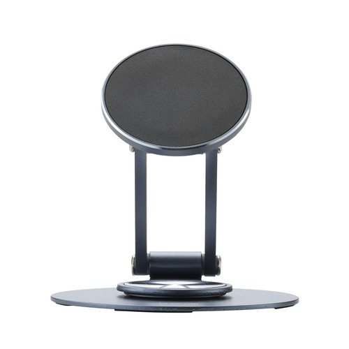 ●折り畳み式でコンパクトに持ち運べる!マグネットで簡単にスマートフォンの着脱ができる、MAGKEEPシリーズのスマホスタンドです。MagSafe非対応でも使用できるメタルプレート付き。マグネット部分は360度回転し、縦向き・横向きの切り替えもスムーズ。土台部分も回転するため、設置場所や使用シーンに合わせて自由に使えます。