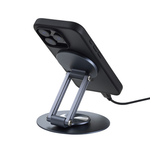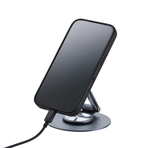 エレコム P-DSM360AL01NBK MagSafe マグネット スマホスタンド 台座360°回転 スマホ使用可 ブラック