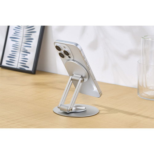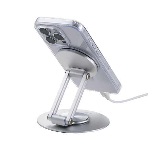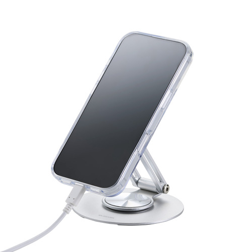 エレコム P-DSM360AL01NSV MagSafe マグネット スマホスタンド 台座360°回転 スマホ使用可 シルバー