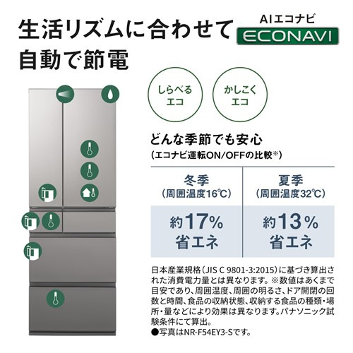 パナソニック 冷蔵庫 542L 観音開き 6ドア 幅65cm 真ん中冷凍室 トップユニット方式 シャキシャキ野菜室 NR-F54EY3-C ベージュ系