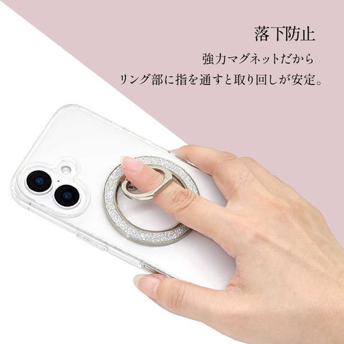 ●付属のメタルシールを貼ることによって、Magsafe非対応のスマートフォンやiPhoneケースで本製品を使用することが可能です。●リング部に指を通すことで手から滑り落ちる等の事故を防止し、リング部は180°開閉し横置き視聴スタンドとして使用できます。