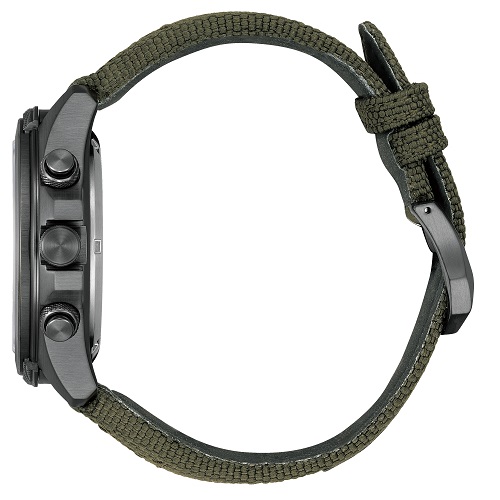 複数時刻や任意の曜日での設定が可能なアラームなど機能面もアップデート。見返しリングは回転式になっており、8時位置のりゅうずを操作することで方位計測が可能です。