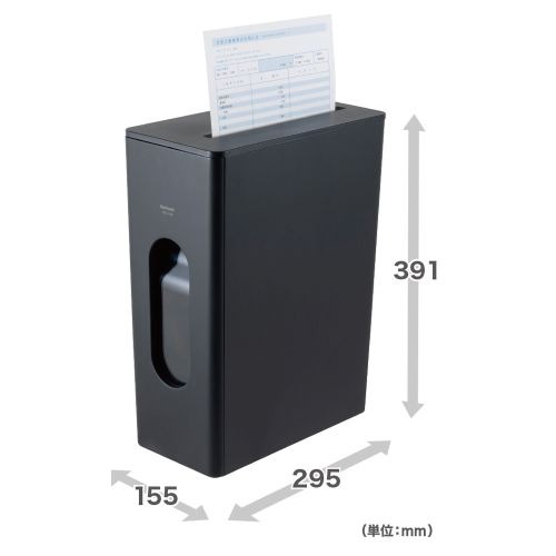 最大細断枚数:4枚(A4 上質紙64g/m2まで)※ 郵便はがき:1枚( 厚み0.2mmまで)