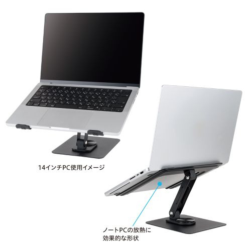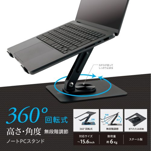 ナカバヤシ NPA-010BK 360°回転式ノートPCスタンド 12.9〜15.6インチ対応 ブラック