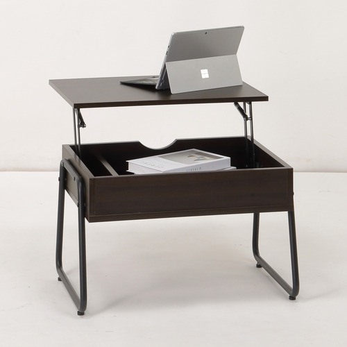 ヤマダオリジナル センターテーブル ストーン 幅63.6×奥行46×高さ40.6cm フラップ 収納スペース ブラック&ブラウン
