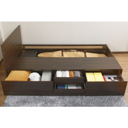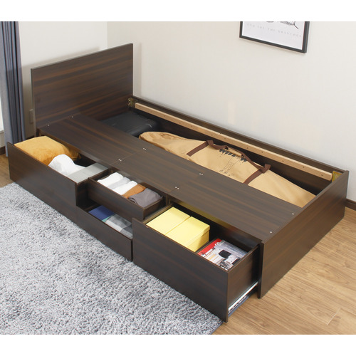 [シングル]ヤマダオリジナル ベッドフレーム ストーン 幅99×奥行198.4×高さ80.7cm 引出4杯付 床板下収納 スぺパ ブラウン