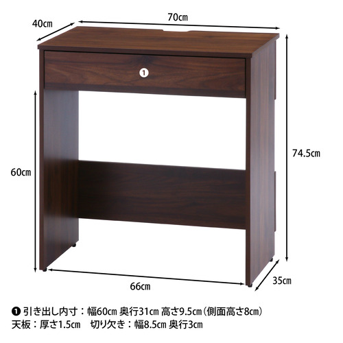 幅70×奥行40cmのコンパクトながらちょうどいいサイズ感。PCデスクとしても、勉強や作業をするのにも快適なスペース。