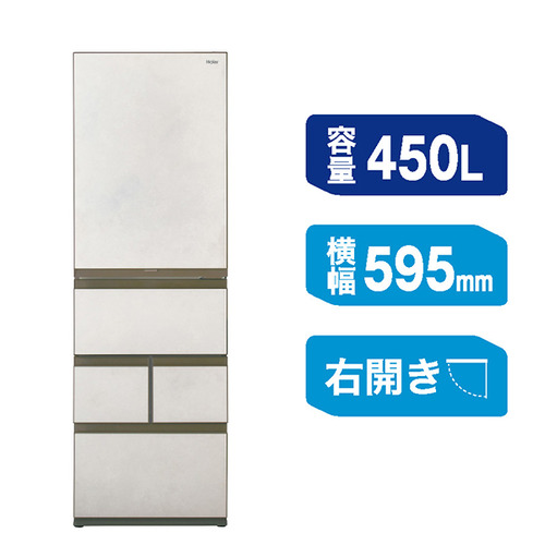 Haier 冷蔵庫 450L 右開き 5ドア 59.5cm 鮮度キープ冷凍 真ん中野菜室 2つのチルドルーム JR-LX45A-H グレー系