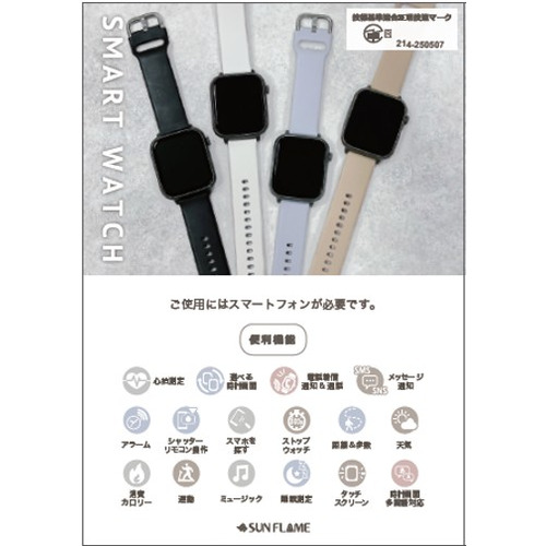 サン・フレイム CS4A0001-GY スマートウォッチ 選べるカラーベルト 多機能16種搭載 グレイ