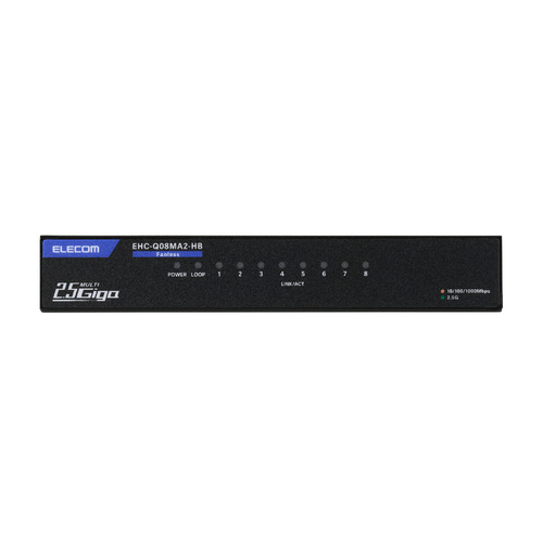 エレコム EHC-Q08MA2-HB スイッチングハブ 8ポート 全ポート2.5Gbps 金属筐体 静音ファンレス 壁掛け対応 IEEE802.3az ブラック