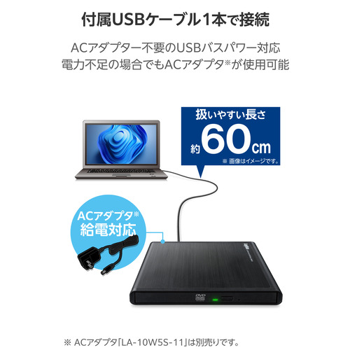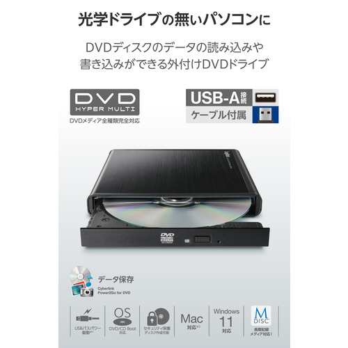 ロジテック LDR-PMM8U2LBK DVDドライブ 外付け 書き込みソフト付 M-DISC対応 USBバスパワー+外部電源ポート Windows mac対応 ブラック