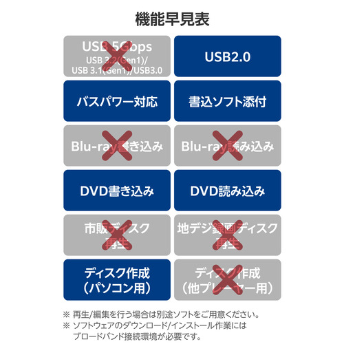 対応ディスク(書き込み時:Mディスク(DVD)):対応