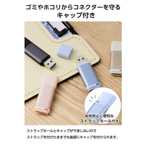 ●ゴミやホコリの侵入からコネクターを守る、キャップ式のUSBメモリです。