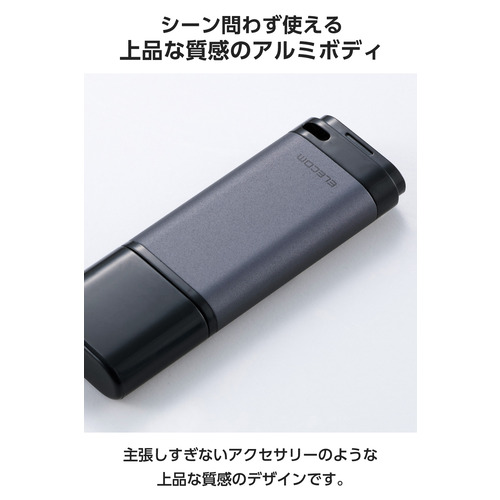 エレコム MF-RCU3128GBK USBメモリ 128GB キャップ式 USB 3.2 Gen1 パスワードロック対応 アルミボディ Windows mac対応 ストラップホール付 ブラック