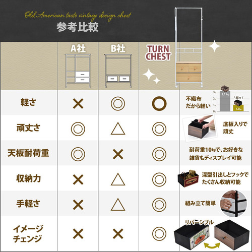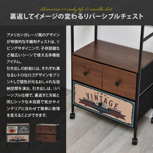 引き出しは、アメリカンスタイル×木目調のリバーシブル仕様