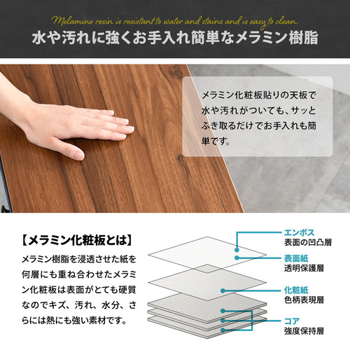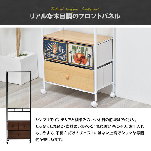 素材:【天板】パーティクルボードにメラミン貼り【背板・引き出し後ろ板】中質繊維板にPVC貼り 【フレーム】スチールパイプ(粉体塗装) 【引出し】不織布 ポリエステル(芯材)MDF、紙 【取っ手】【キャスター】PP