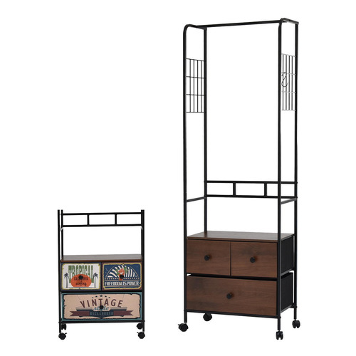 B.Bファニシング ターンハンガーラック 幅59×奥行30×高さ174cm リバーシブル アメリカン 木目調 ダークブラウン RVLS0385MODBR