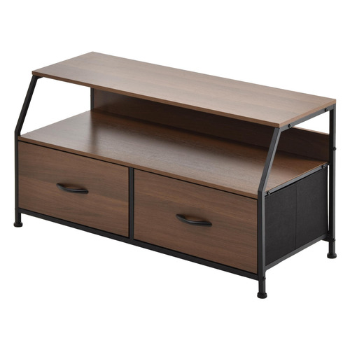 B.Bファニシング 棚付きリビングチェスト Regal ロータイプ 引き出し2杯 幅94cm メラミン天板 ダークブラウン ONLS0387MODBR