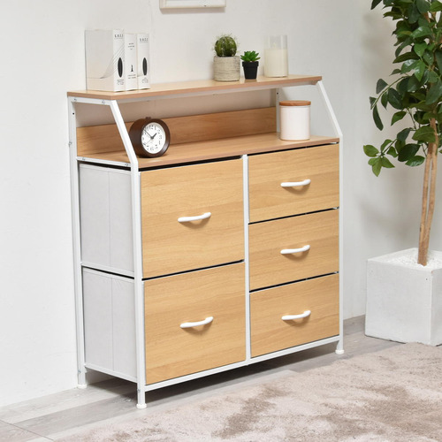 B.Bファニシング 棚付きリビングチェスト Regal ハイタイプ 引き出し5杯 幅84.5cm メラミン天板 ナチュラル ONLS0388MONAT