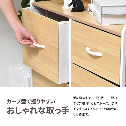 素材:【上棚板/天板】パーティクルボードにメラミン貼り【引き出し前板】中質繊維板にメラミン貼り【フレーム】スチールパイプ(粉体塗装)【引出し】ポリエステル不織布(芯材)MDF、紙【取っ手】天然木