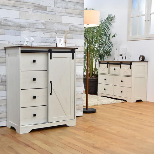 B.Bファニシング スライドドア付きチェスト4段 Farm house ハイタイプ 幅75.5×奥行41×高さ93cm ダークブラウン ONLS0389MODBR