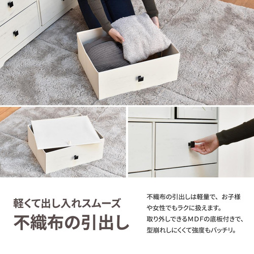 素材:【天板/側板/底板】パーティクルボードにメラミン貼り 【引き出し前板】中質繊維板にメラミン貼り 【フレーム】スチールパイプ(粉体塗装)【引出し】ポリエステル不織布(芯材)MDF、紙【取っ手】アルミニウム合金