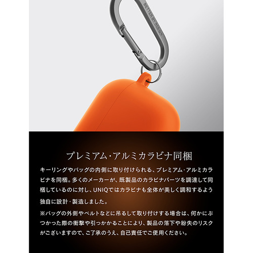 より紛失の心配が無くAirPod4を持ち運ぶためにプレミアムアルミカラビナを採用しています。