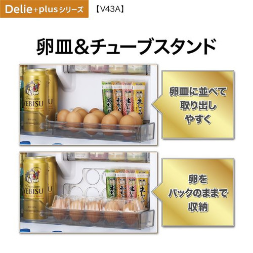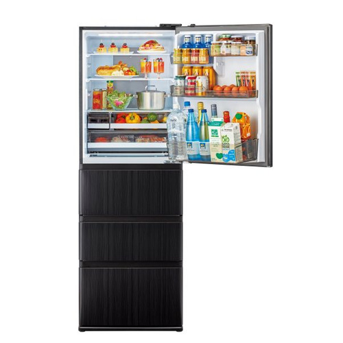 AQUA 冷蔵庫 433L 右開き 4ドア 幅59.5cm 大容量冷凍室 おいシールド冷凍 見える野菜室 AQR-V43A(K) ウッドブラック